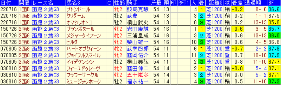 個人的には前走阪神コースというのが少し引っかかっており、過去10年で前走函館札幌でなかった馬は1頭しかいません。